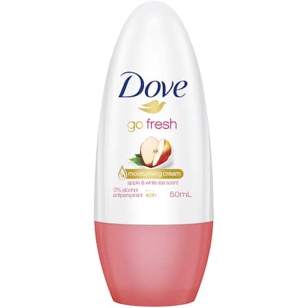 DOVE ANTIPERSPIRANT ROLL ON APPLE & WHITE TEA 50 ML<BR><BR>Searching for something fresh? The new Dove Go Fresh Apple and White Tea roll on is the perfect match if you are looking for an antiperspirant deodorant with 48h protection and an addictive fresh, fruity fragrance. With its crisp notes of juicy apple and white tea and a subtle hint of floral, this refreshing scent will take you straight to those early summer days with blossoming apple-trees and flower markets. The mild, alcohol-free formula helps reduce irritation and dryness while Dove’s unique ¼ moisturising cream cares for your underarm skin and helps to recover from any irritation that regular shaving might cause. Whether it is after your morning shower, post a hot yoga class or just before going out; no matter the occasion, Dove Go Fresh has got your underarm needs covered keeping them smelling fresh and staying protected all day long. For best results, put one arm up above your head and apply the roller ball to your skin using light pressure and a circular motion to cover the whole area. Repeat the process on the other underarm. Apply your antiperspirant deodorant before bed as well as in the morning - at night, your body temperature is cooler, so you sweat less and the formula has a better chance of sinking into the delicate underarm skin ready for the day ahead. Stay fresh with new Dove Go Fresh Apple & White Tea, try this women's deodorant today.<BR><BR>Provides instant freshness and up to 48h antiperspirant protection<BR><BR>A fruity floral fragrance with crisp notes of juicy apple and white tea<BR><BR>Mild 0% alcohol formulation to help reduce irritation and dryness.