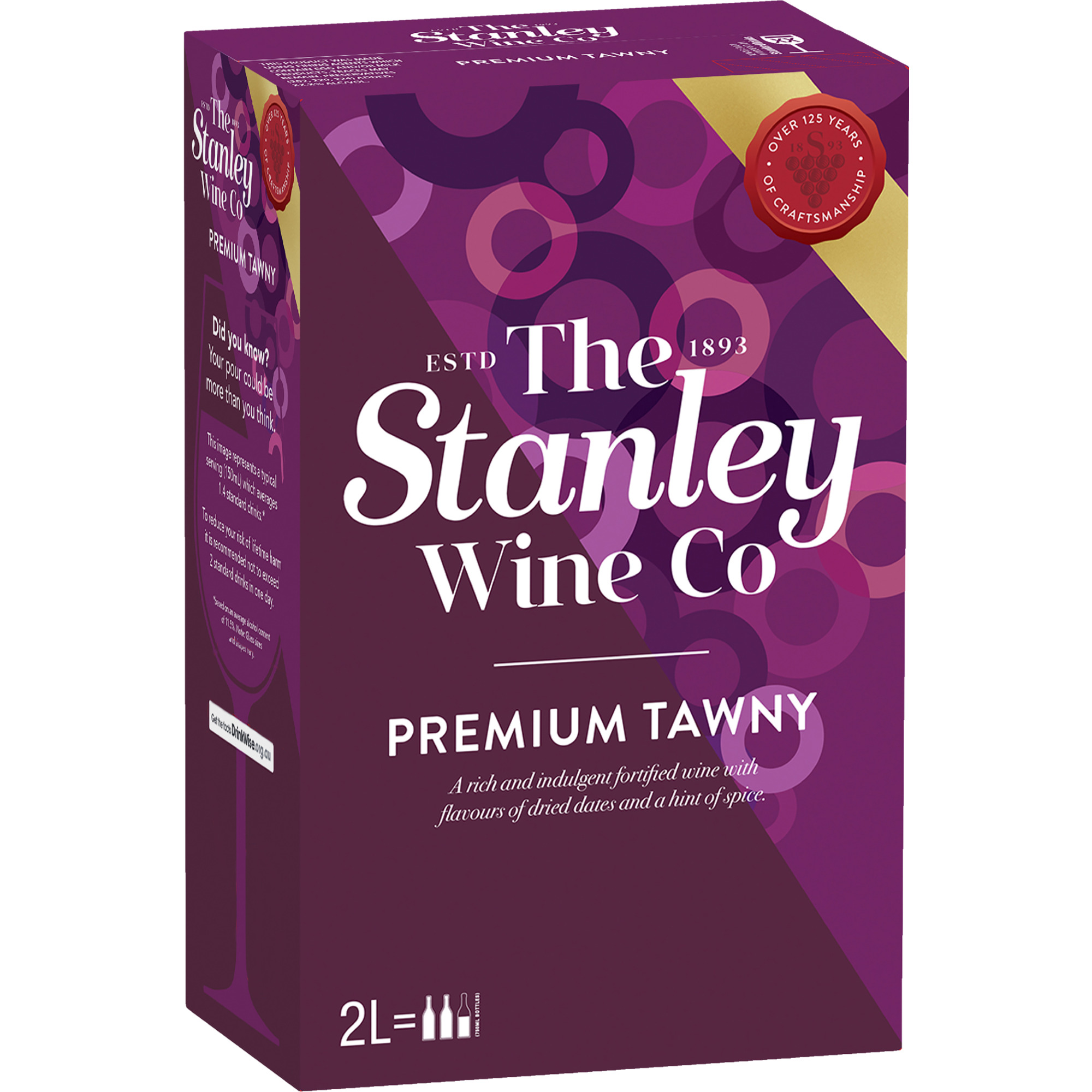 Two litres of tawny port from Stanley means two litres of sweet dried fruit and a hint of spice.