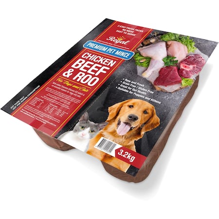 Fresh prime minced meats (chicken, beef, kangaroo), natural flavour, seaweed and natural gels, essential vitamins and minerals (including taurine), food acid, canola oil, antioxidant, preservative (220), thiamine.