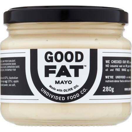 Australian Olive Oil (67%), Australian Extra Virgi n Olive Oil (13%), free range egg (12%), apple cid er vinegar, lemon juice, mustard powder, sea salt, rosemary extract