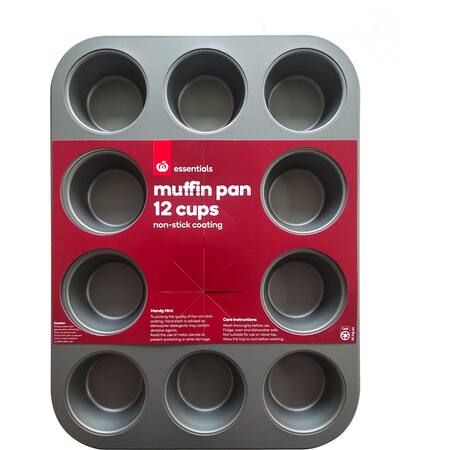 Bake delicious goodies with this Essentials 12 cup muffin pan, perfect for baking muffins or cupcakes for friends and family. The wide lid makes it easy for handling in and out of the oven and the non-stick coating enables quick food release. - Overall Size: 26.5cm x 35cm x 3cm (height) - 12 cups - Dishwasher safe