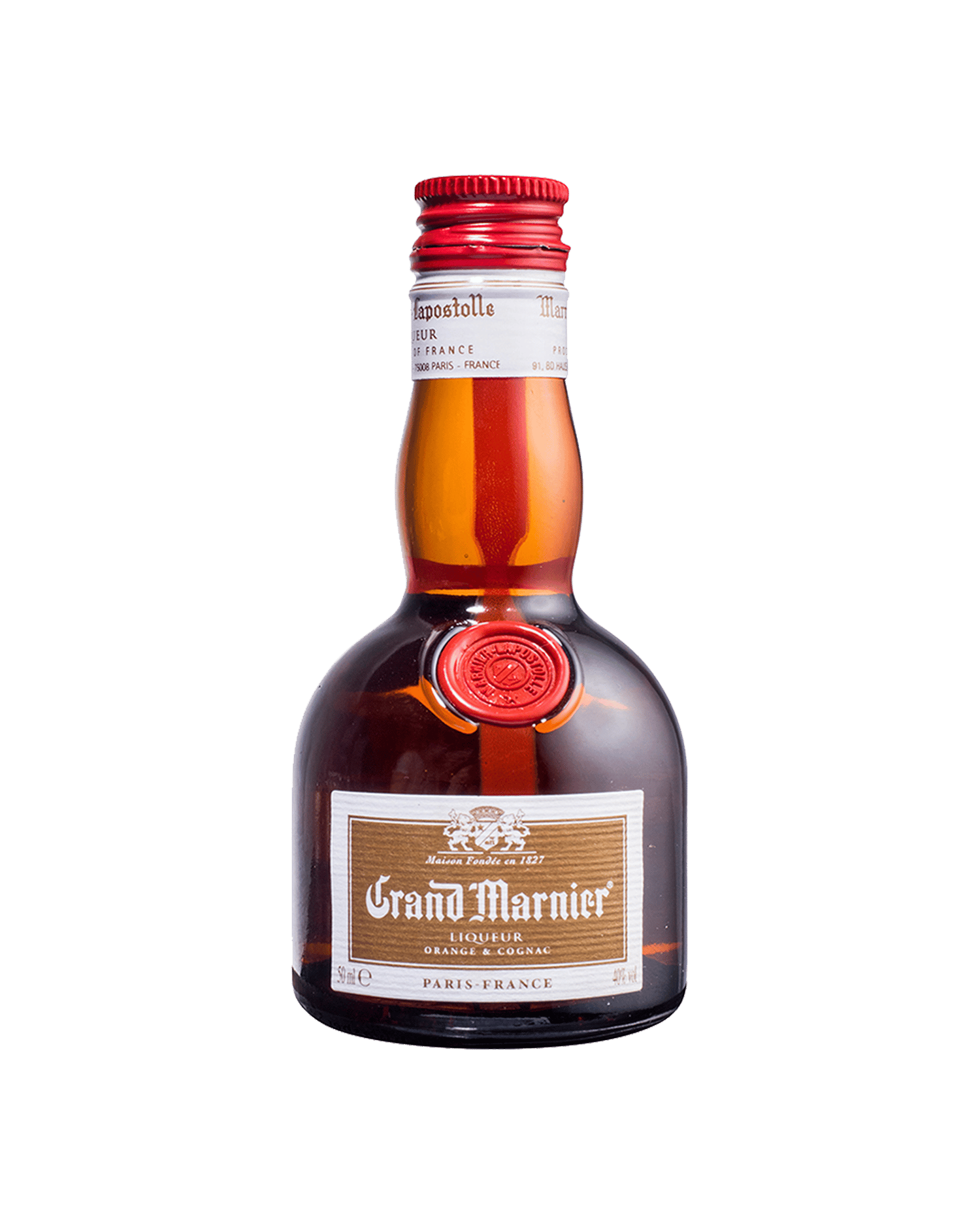 Created back in the 1800's, Grand Marnier liqueur is made from a blend of cognac and bitter orange. A key ingredient in the famous dessert Crepe Suzette, it can also be enjoyed neat or in cocktails. Sold here in a 50ml bottle.