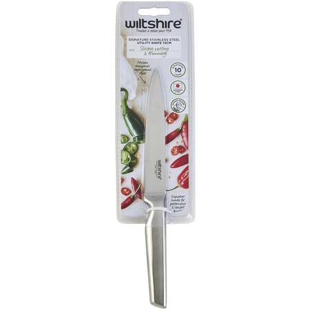 The Wiltshire Japanese Stainless Steel Utility Knife is ideal for precision cutting, trimming and slicing. Product Features: 12cm Super sharp fine edge blade Made from high quality Japanese stainless steel for sharpness and edge retention Seamless handle construction avoids food getting trapped Handle is contoured & comfortable to use