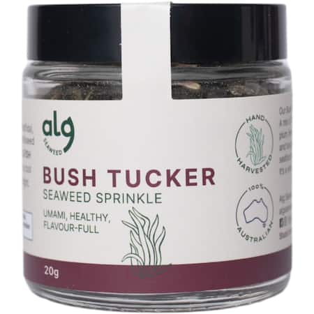 Tasmanian wakame (undaria pinnatifida), lemon myrt le, Davidson plum, wattleseed.