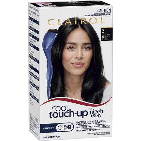 Extend the life of your hair colour with Clairol permanent Root Touch-Up hair colour. Root Touch Up gives your hair colour a mid dying cycle boost, covering roots and greys when used between regular colourings. The targeted Root Crme works in just 10 minutes and with a blend of tones, matches leading shades, even salon colour.* With a colour suitable for you, Clairol Root Touch Up 2 Black Hair colour, you can ensure your roots are never on show. Make use of the included precision brush and easily banish your root line with permanent colour. (*Among leading retail permanent shades and pre-formulated salon colour).