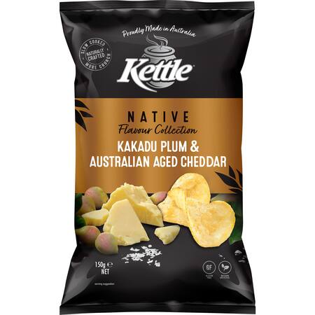 Potatoes, Sunflower and/or Canola Oil, Sugar, Salt, Yeast Extract, Natural Flavours, Spices, Food Acid (Lactic, Citric), Australian Aged Cheddar (Milk), Cocoa Powder, Natural Colour (Paprika Extract), Kakadu Plum Essence.