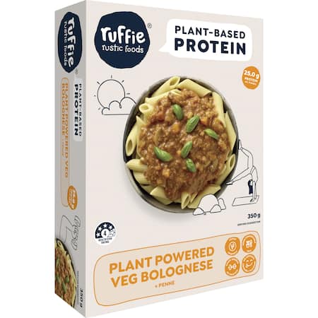 Get Ruffie Rustic Foods Plant-Based Protein Powered Veg Bolognese 350g delivered to your doorsteps in minutes | NZ