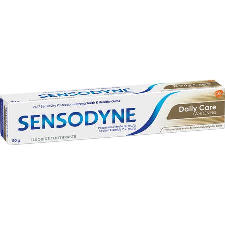 WARNINGS AND PRECAUTIONS: Sensitive teeth may indicate an underlying problem that needs prompt care. If symptoms persist or worsen consult your dentist. Talk to your dentist or doctor as soon as possible if you experience swelling of the mouth or face.Water - Purified, Sorbitol solution 70% non-crystallising, Hydrated silica, Glycerol, Potassium nitrate, Sodium tripolyphosphate, Macrogol 300, Flavour, Titanium dioxide, Cocamidopropyl betaine, Sodium methyl cocoyl taurate, Xanthan gum, Sodium hydroxide, Saccharin sodium, Sodium fluoride. Contains Sodium fluoride 0.221% w/w. No Sensodyne toothpaste contains sugar.