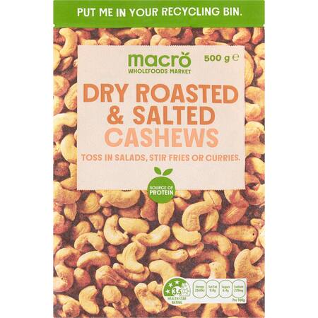 Caution: Great care has been taken to remove all shell and shell fragments, however some may remain.Dry Roasted Cashews (99%), Salt.