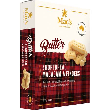 Wheat Flour, Choice Butter 29.2% (Cream (Milk), Sa lt), Sugar, Macadamia Nuts 3.5%, Salt, Raising Ag e nts (450, 500, 503).