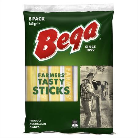 Bega Farmers' Tasty Sticks Cheese are a source of calcium.