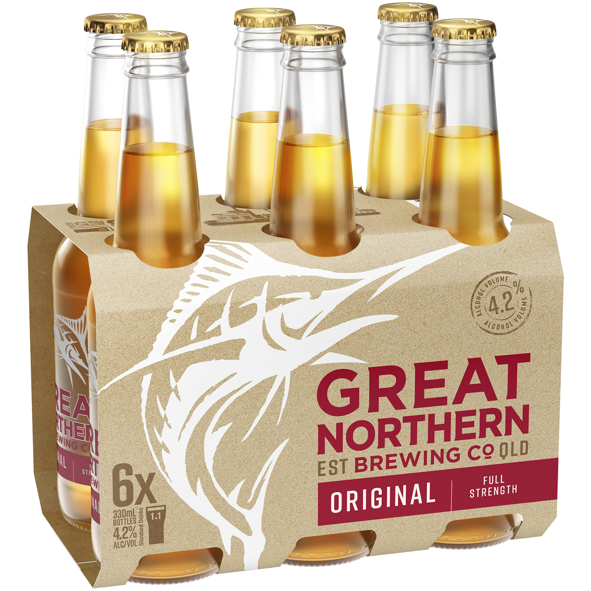 Great Northern Brewing Co. Original lager was brewed with an outdoor lifestyle in mind. With its fruity aroma, low bitterness and clean, crisp finish, it's the ultimate refreshment for the Great Northern conditions. Brewed using a light stable hop to avoi