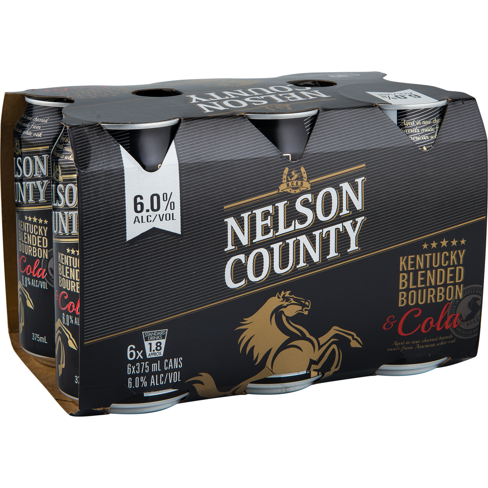 Nelson County 6% Bourbon and Cola is made with aged bourbon, which is rich and smooth with a slightly sweet taste that complements the flavour of cola to the point of perfection. With a premium taste that's slightly stronger than your regular bourbon, thi