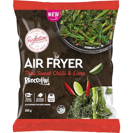 Broccolini® (94%), Seasoning (Sugar, SaltMaltodextrin (Maize), Dehydrated Vegetables(Potato, Red Bell Pepper, Garlic), Spices (Chilli(0.1%), Ginger, Red Pepper, Cayenne),Food Acid (Citric Acid), Natural Flavour, PotatoFibre, Yeast Extract, Soy Sauce PowderNatural Colour (160c), Lime Oil (0.01%)Thickener (415), Canola Oil,Herb(Kaffir Lime Leaves (0.01%), Garlic Extract).