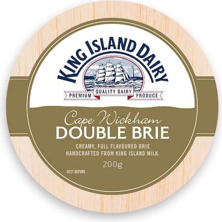 Cape Wickham Double Brie’s velvety, dense white rind encases a beautiful glossy, creamy coloured centre. The flavour is superbly rich with mushroom overtones
