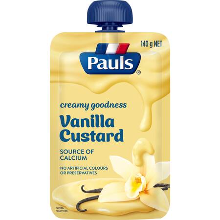 At Pauls, we love dairy and put that passion into every Pauls milk, cream, custard and yoghurt we make. Pauls Vanilla Custard pouches allow you to enjoy custard wherever you are, whether it be at home, work or on the go.