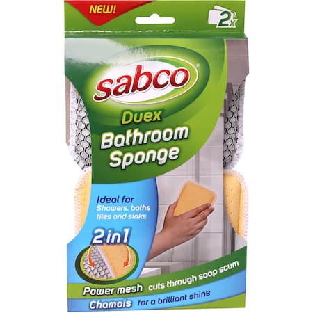 The Sabco Bathrom Duex is the ultimate in bathroom cleaning! The 2-sided wash pad combines a non-scratch mesh scourer that cuts through soap build-up with ease, with a chamois backing for a streak-free wipe down. Perfect for shower screens, bathware and tiles this is the all-in-one bathroom sponge!