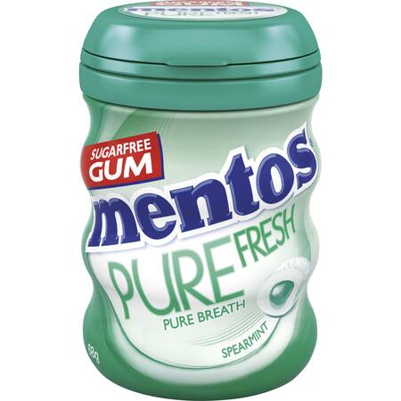 Mentos Pure Fresh Spearmint chewing gum also helps keep your teeth clean and your breath fresh. Its sugar-free formula means you can enjoy it without guilt, and the bottle is perfect for keeping in your car, purse, or desk.