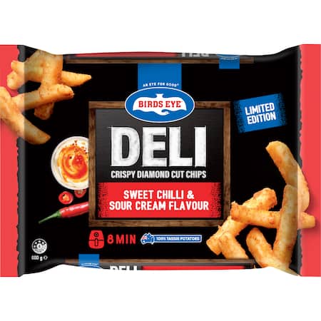 Potato (84%), canola oil, *wheat* flour, thickeners (1400, 1420, guar gum), salt, corn starch, natural flavour, rice flour, sugar, cayenne pepper, acidity regulators (450, citric acid, sodium bicarbonate), colours (carotene, paprika oleoresins), chilli powder, sweetener (steviol glycosides).