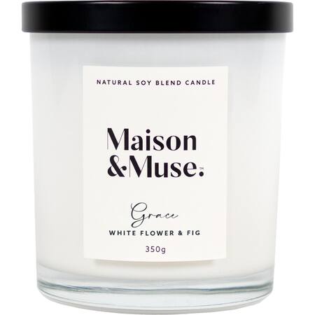 Get Maison & Muse Natural Soy Blend Candle Grace White Flower & Fig 350g delivered to your doorsteps in minutes | NZ
