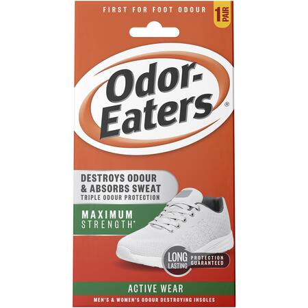 Odor-Eaters Active Wear Insoles destroys odour and absorbs sweat.<BR><BR>Odor-Eaters Active Wear Insoles are specially designed for sneakers and sports shoes. Now your sneakers can stay fresh and comfortable no matter how active you are. Odor-Eaters Active Wear insoles contains activated charcoal to lock in and destroy odour, Insta-Fresh® to instantly neutralise sweat acids that release odour and a powerful anti-bacterial agent to fight odour-causing bacteria, providing odour and wetness control that lasts for months.<BR><BR>- Destroys odour on contact<BR><BR>- Men's & Women's odour destroying insoles<BR><BR>- Maximum strength for sports shoes and sneakers<BR><BR>- Triple odour protection<BR><BR>- Long lasting protection guaranteed.