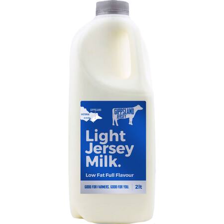 Gippsland Jersey's Light Milk - a game-changer for those seeking a healthier milk option without sacrificing flavour. Our award-winning Light Milk has only 2g of fat per 100ml, making it the perfect choice for anyone who wants to indulge in the creamy goodness of our milk without the guilt. Whether you're enjoying it in your morning coffee or pouring it over your cereal, our Light Milk delivers the same rich and delicious taste as our Full Cream Milk, but with a lighter touch on your waistline. Naturally high levels of A2 protein, essential nutrients and vitamins like Vitamin A, E, and D, magnesium, and potassium. On average Jersey milk has 20% more calcium and 18% more protein than most other milks.