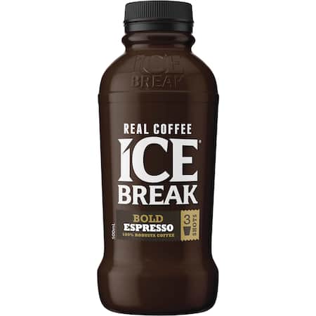 Ice Break Bold Espresso is a pasteurised iced coffee flavoured milk<BR><BR>Take on the day with an ice cold Ice Break Bold Espresso - made with 3 shots of dark roasted Robusta coffee beans and fresh full cream milk for a smooth and bold coffee taste.<br /><br />3 COFFEE SHOTS<br />100% ROBUSTA COFFEE