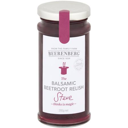 Beetroot (35%), Sugar, Balsamic Vinegar (11%), Vinegar, Apple, Onion, Herbs and Spices, Sea Salt, Thickeners (Modified Potato Starch, Pectin)