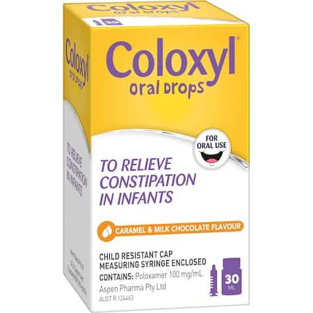 Coloxyl Oral Drops should be given in the feeding bottle or in fruit juice, as per the dose table below, three times daily: