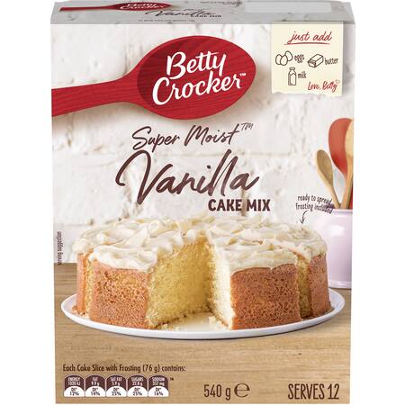 Cake mix (78%): Wheat Flour, Sugar, Vegetable Oil, Raising Agents (Sodium Acid Pyrophosphate, Sodium Bicarbonate, Sodium Aluminum Phosphate), Emulsifier (Mono- and Di-Glycerides of Fatty Acids), Maize Starch, Modified Maize Starch (1422), Vanilla Flavour, Salt, Dextrose, Thickener (Xanthan Gum), Frosting (22%): Sugar, Vegetable Oil, Water, Invert Sugar Syrup, Emulsifiers (Mono- and Di-Glycerides of Fatty Acids, Polysorbate 60, Sodium Stearoyl Lactylate), Salt, Preservative (Potassium Sorbate), Mineral Salt (Sodium Acid Pyrophosphate), Vanilla Flavour, Colour (Carotene), Food Acid (Citric Acid)