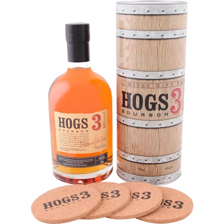 Hogs 3 Bourbon Tin With 4 Coasters 700ml