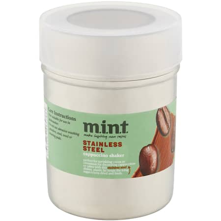 Add some creative flair to your cappucinos and cakes with this Mint stainless steel cappucino shaker. The plastic lid keeps the icing sugar or cocoa dry and fresh. - Made from mirror-finish stainless steel.