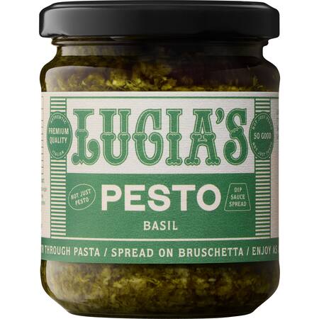 Basil 33%, sunflower seed oil, cheeses [Grana Padano POD (milk, salt, rennet, preservative: lysozymefrom egg), Pecorino (ewe's milk, salt, rennet)],extra virgin olive oil, glucose syrup, cashew nuts, dehydrated potatoes, salt, pine nuts, garlic, acidity regulator: lactic acid, antioxidant: ascorbic acid.