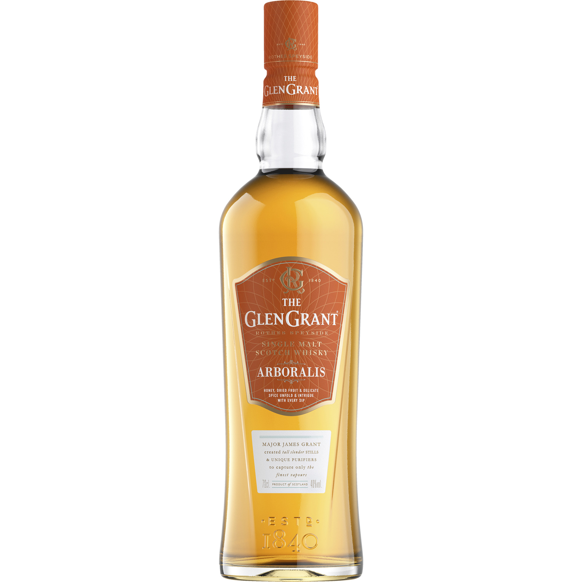 Arboralis is matured until it achieves its signature complex elegance from which The Glen Grant has been celebrated for over 180 years. This fine single malt has a soft aroma of fruit and honey, with a golden whisky delivering notes of creamy toffee and ripe pears, finishing with a long, satisfying hint of delicate spice