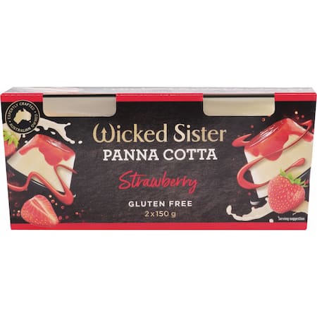 Panna Cotta Cream (80%): Water, Dairy Ingredients (Cream (Milk), Full Cream Milk Powder), Dextrose, Sugar, Stabilisers (1422, 466) Gelatine (Beef), Emulsifier (471), Natural Flavouring. Strawberry Coulis (20%): Water, Strawberry Puree (30%), Sugar, Stabilisers (1442, 466), Natural Flavours, Natural Colour (160d), Acidity Regulators (330, 331).