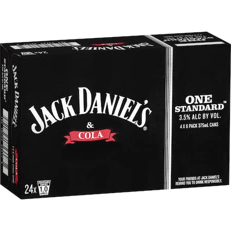 Get Jack Daniel's Whiskey & Cola 3.5% Cans 375mL x 24 case delivered to your doorsteps in minutes | NZ