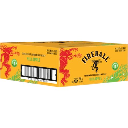 FIREBALL CINNAMON WHISKY WITH APPLE! We just made your favourite mix even easier, now available in ready to drink, Fireball Whisky Sparkling Apple. A generous serve of Fireball Cinnamo