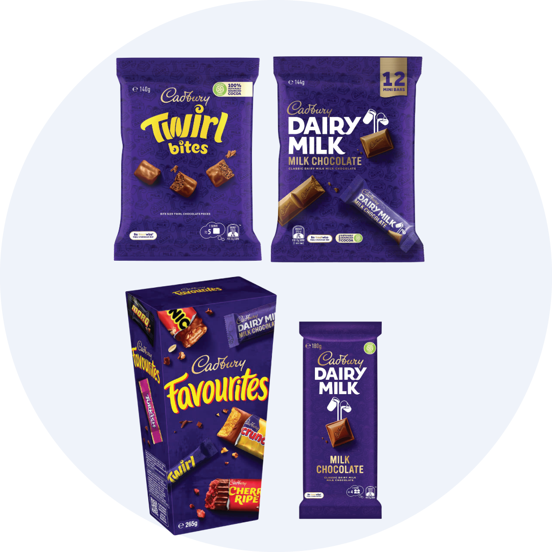 Indulge in a decadent assortment of Cadbury fan favourites, perfect for sharing or satisfying a chocolate craving.