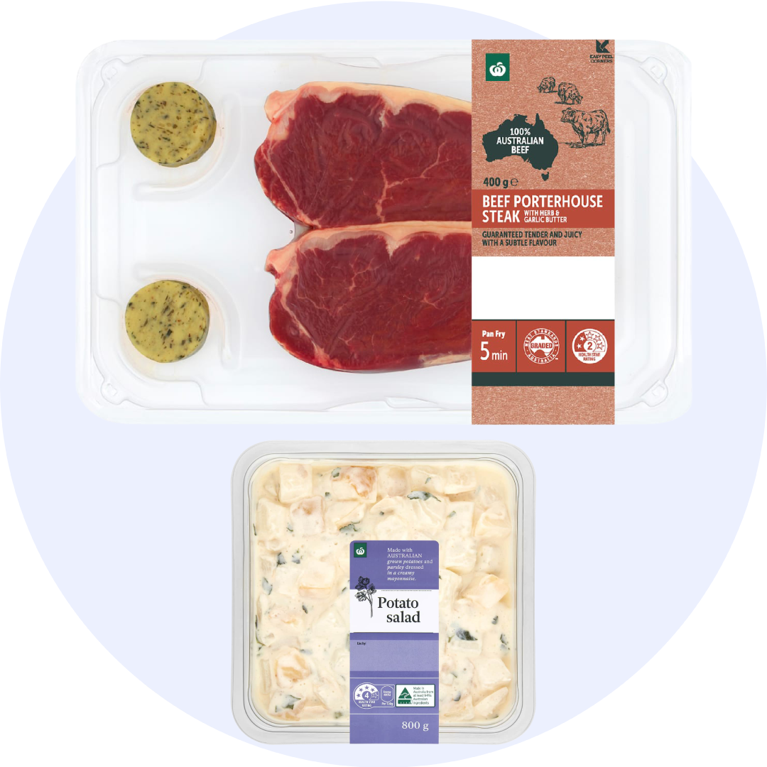 A hearty bundle featuring premium steaks and a fresh salad mix for an easy, crowd-pleasing family meal.